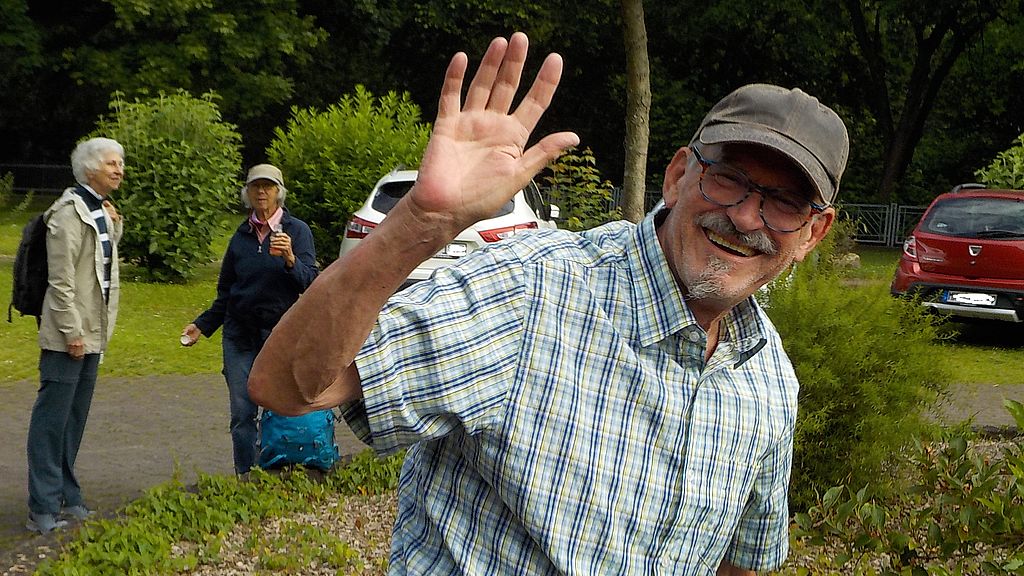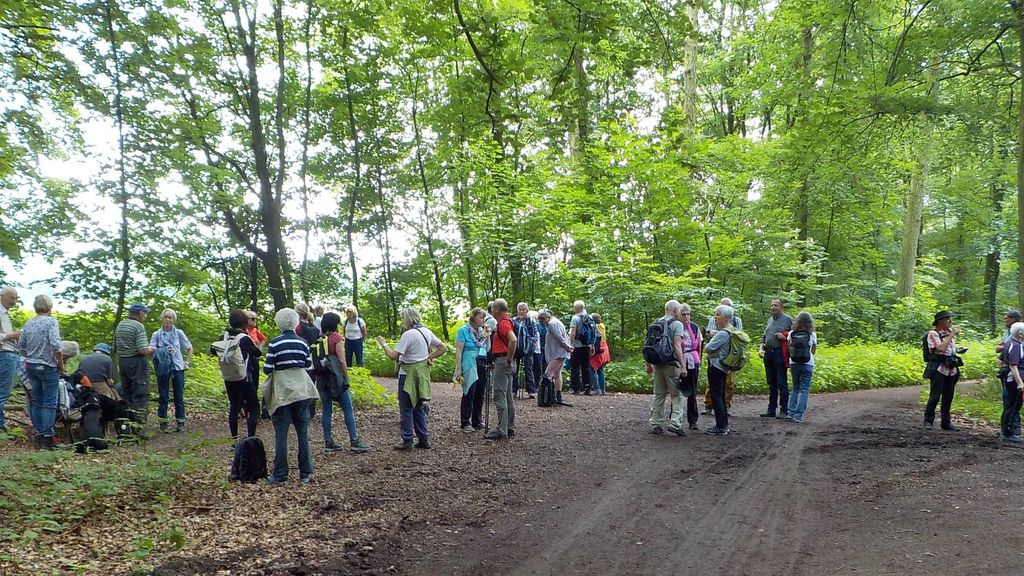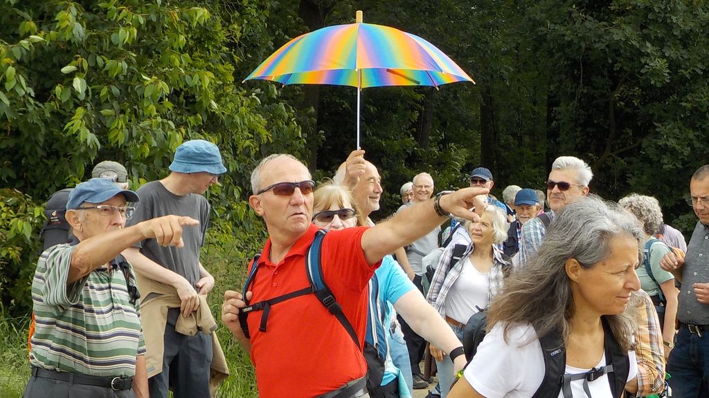 Bei idealem Wanderwetter schnürten 45 Wanderinnen und Wanderer ihre Wanderschuhe, um sich auf den Weg von Schöneck-Büdesheim nach Karben zu machen. Kurz nach dem Start wurde bereits der erste Fluss, die Nidder, überquert. Auf gut begehbaren Wegen ging es hinauf an den Rand des Stadtwaldes von Karben. In der Waldmitte wurde am „Hessischen Löwen“ eine kurze Pause eingelegt. Auf dem Weg hinunter nach Groß-Karben faszinierte die Wandergruppe das weite Panorama, das von der Skyline Frankfurts über den gesamten Taunus bis in die Wetterau reichte. Exakt Punkt 12 Uhr konnten sich die Wanderinnen und Wanderer zum Mittagessen im Restaurant „deftig & fein“ niederlassen.