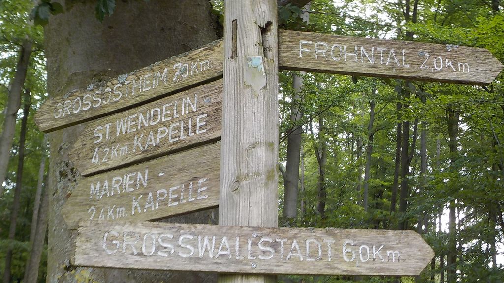 Der Rückweg begann ab „Friedenseiche“ mit einem recht anstrengenden, steilen Aufstieg. Über den Berg nördlich von Eisenbach führte der Weg abwärts zum „Lauterhof“, um dann den nächsten steilen Aufstieg zum Naturparkplatz „Auf der Hardt“ in Angriff zu nehmen. Der Schweiß floss in Strömen! Aber bald war es geschafft. Auf breiten Forstwegen und schmalen Pfaden ging es durch den Königswald wieder zurück zum Ausgangspunkt der Wanderung am Schützenhaus in Mömlingen.