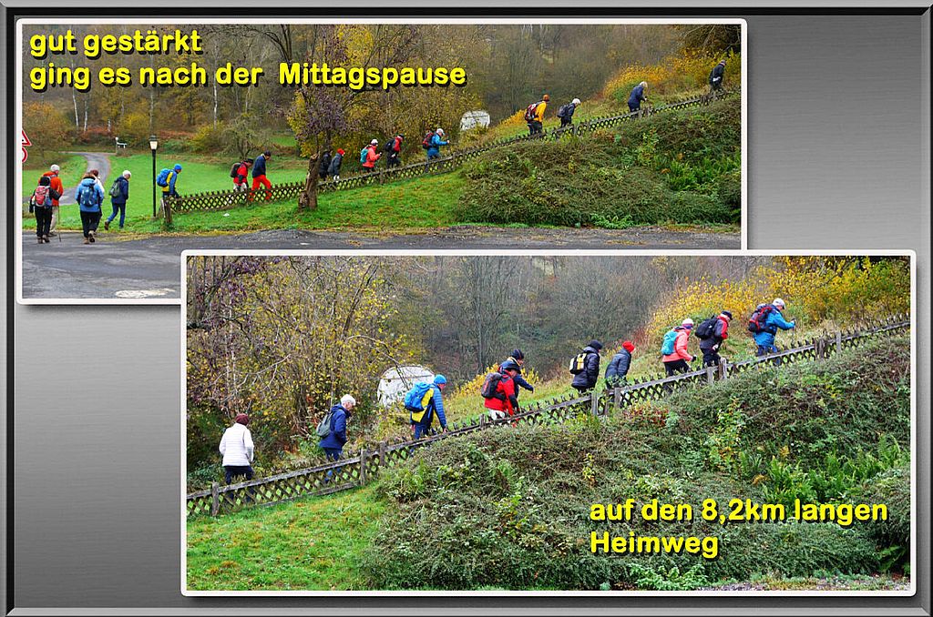 Die Wanderung hatte eine Länge von 15,7 km bei anspruchsvollen 415 Höhenmetern im Anstieg. Für die gesamte Wegstrecke benötigte die Wandergruppe eine reine Gehzeit von etwas mehr als 4 Stunden.