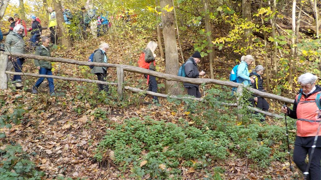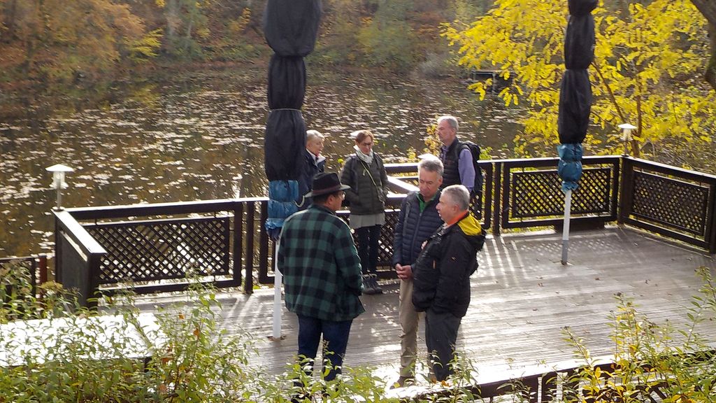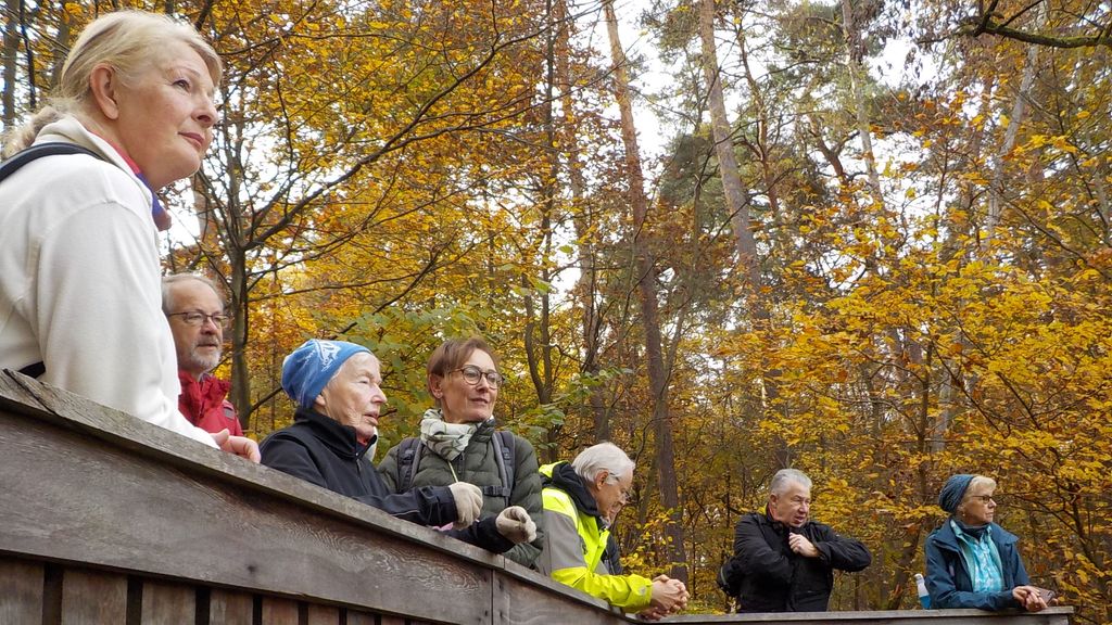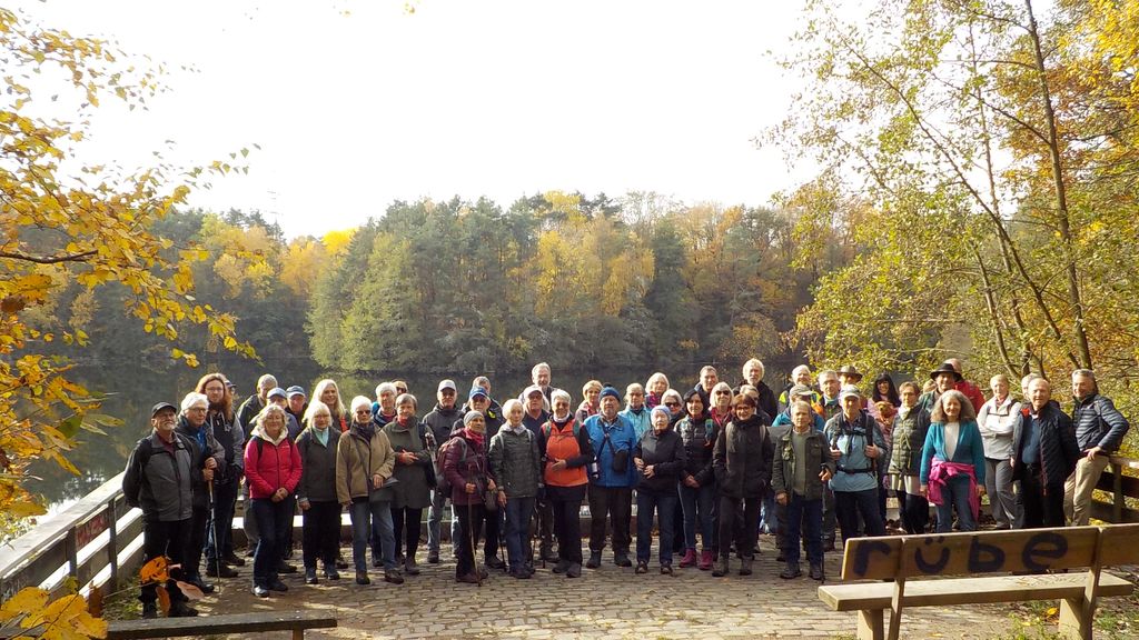 Gegen Mittag bot das gut geheizte Zelt des Restaurants „Zum Grünen See-Eck“ eine willkommene Einkehrmöglichkeit, um sich zu stärken. Der Rückweg führte erneut über abenteuerliche Wege entlang der Seen, über die markante Canyon-Brücke zwischen Vogelberger- und Oberwaldsee, bevor der herbstliche Wald mit seinen leuchtenden Gelb-, Orange- und Rottönen die Gruppe auf ihrem Weg durch den Unterwald zurück zum Ausgangspunkt begleitete.
